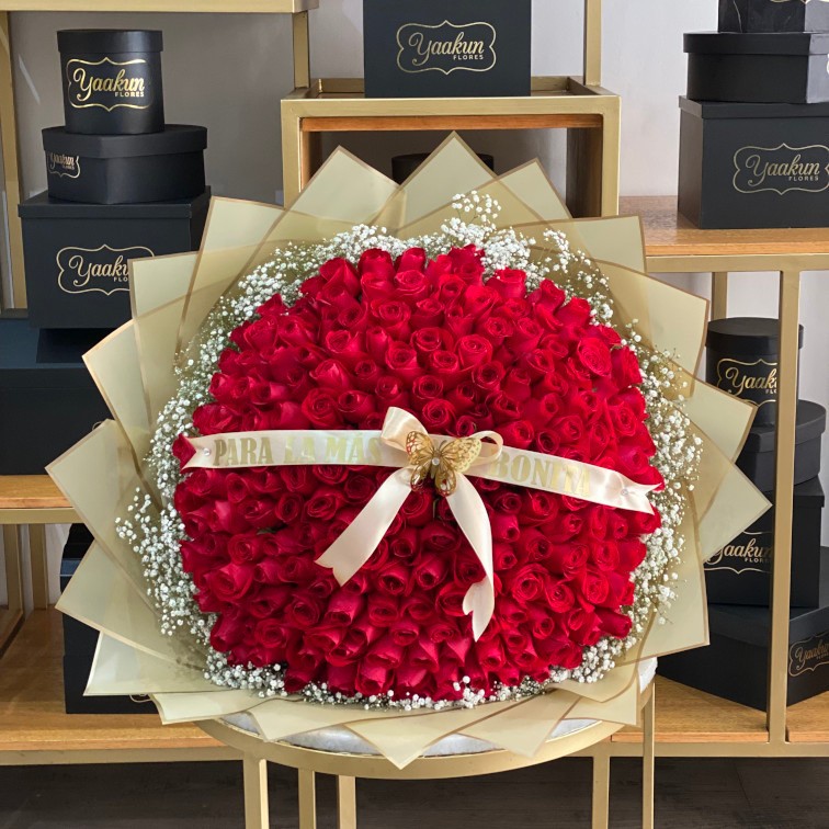 Hermoso bouquet con 300 rosas amarillas y rositas