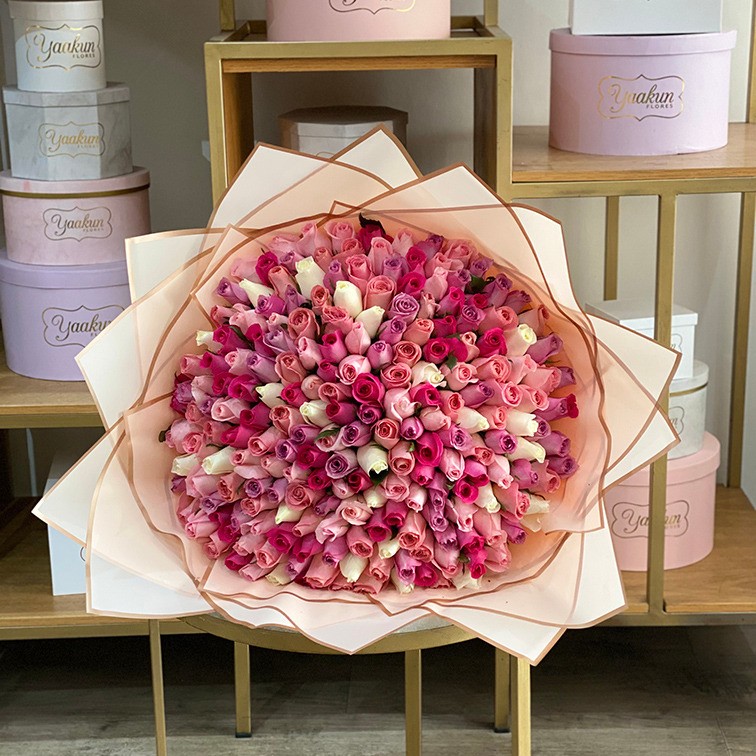 Hermoso ramo de 100 rosas calidad de exportación 4 tonos pastel