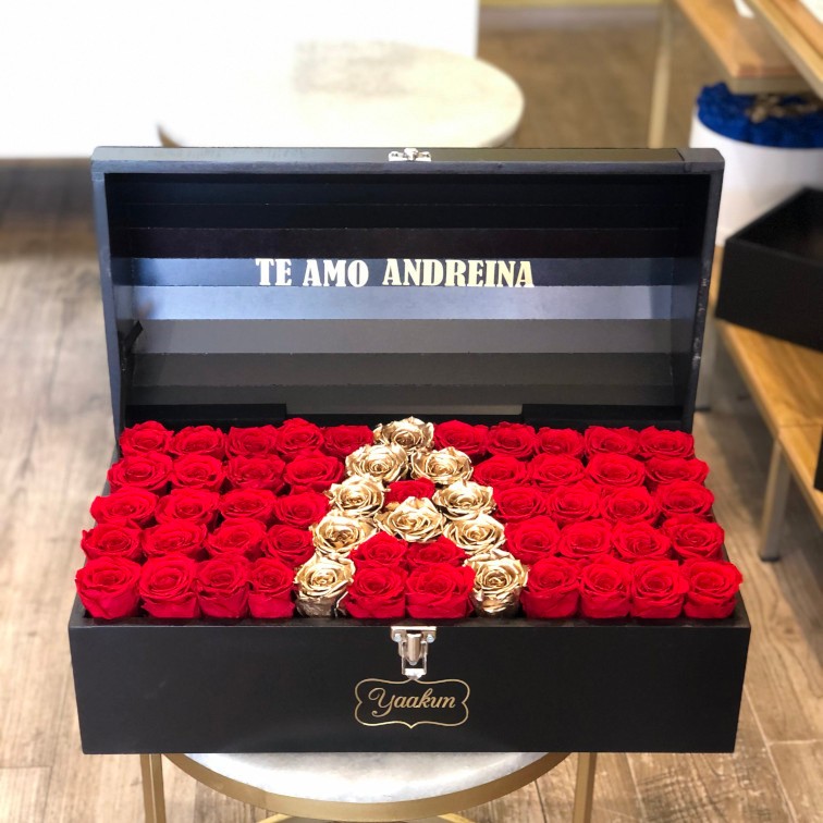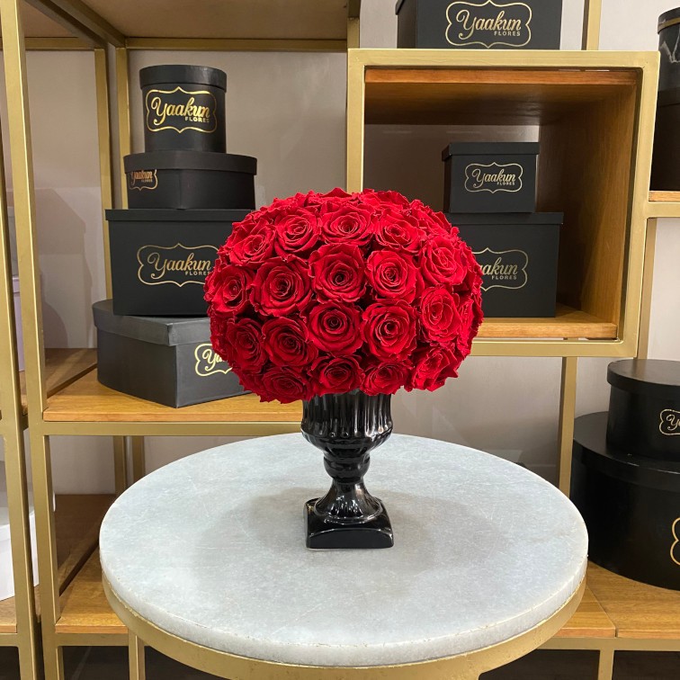 Hermoso y elegante diseño floral con 40 rosas eternas en color rojo